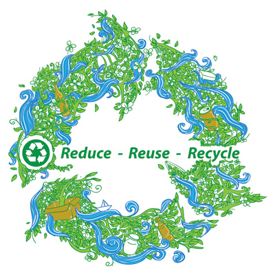 Recycle art, show the circle icon collaborates with leaves, flowers and water flow. Vector file separated layers and colors. Changeable and editable file.