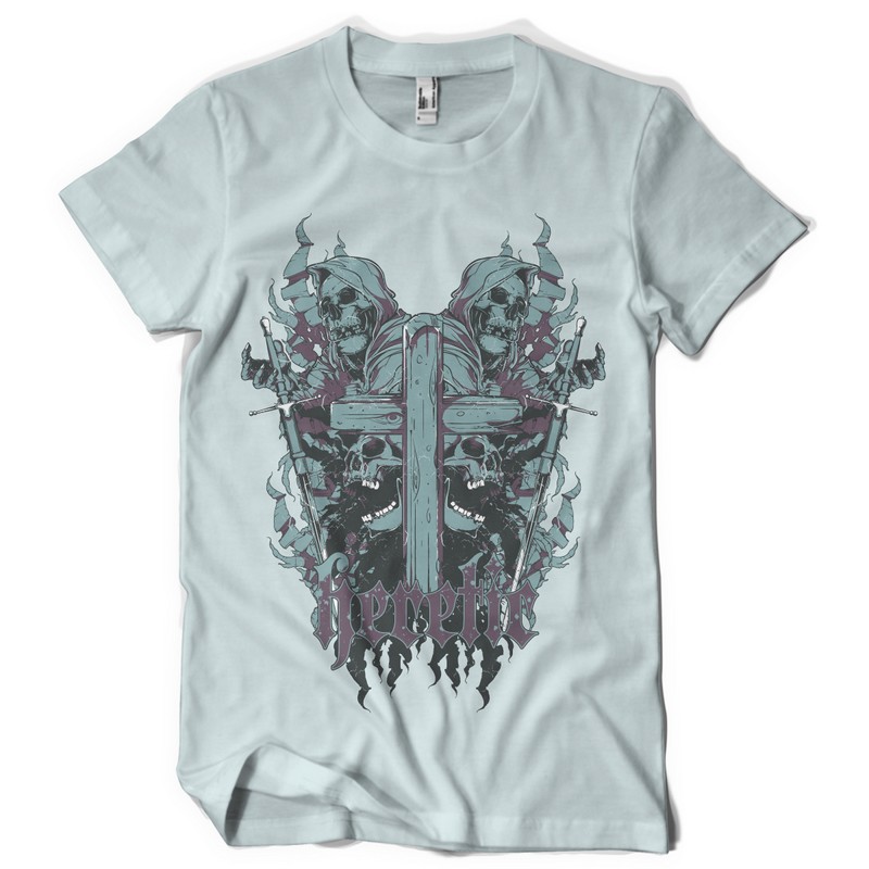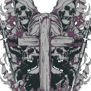 Reflection graphic design template in vector format, featuring detailed cross of wood and skulls now available for Adobe Illustrator, Adobe Photoshop and Corel Draw and can be used for digital printing and screenprinting .