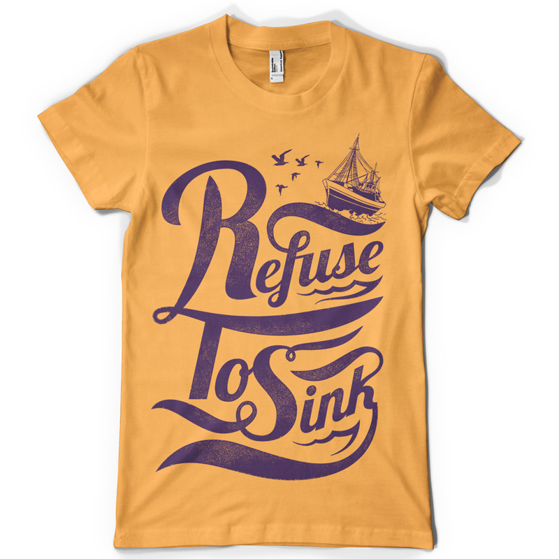 Refuse to sink digital design template in vector format, featuring detailed hand lettering message for sailors now available for Adobe Illustrator, Adobe Photoshop and Corel Draw and can be used for digital printing and screenprinting .