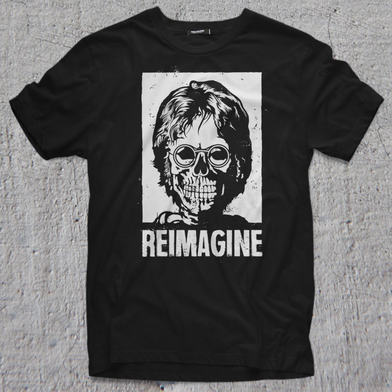 REIMAGINE on dark color t-shirt.