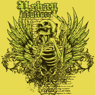 Ressurection is a digital artwork presenting an angel skeleton is available in vector format for Adobe Illustrator, Adobe Photoshop and Corel Draw and can be used for digital printing and screenprinting .