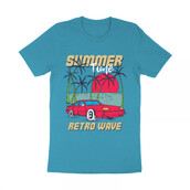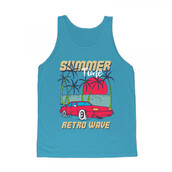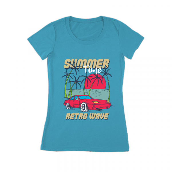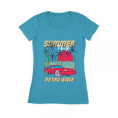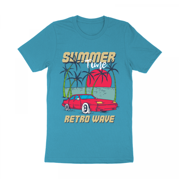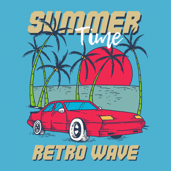 A retro sport car on the palm tropical beach and sunset background. Ready to print on t-shirt.