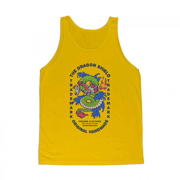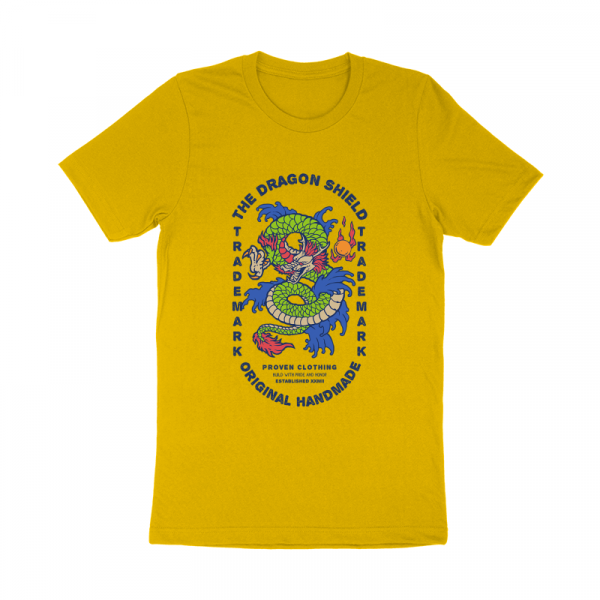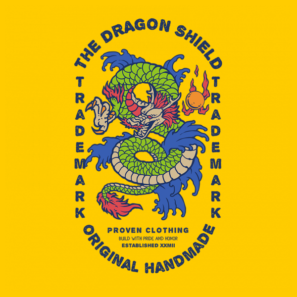 Vector of vintage label design with asia dragon tattoo illustration with flames and fire breath. Ready to print on t-shirt.