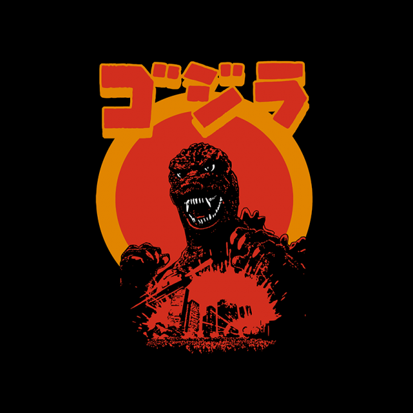 This design “ retro gojira ” is made in Adobe Ilustrator is ready for print.