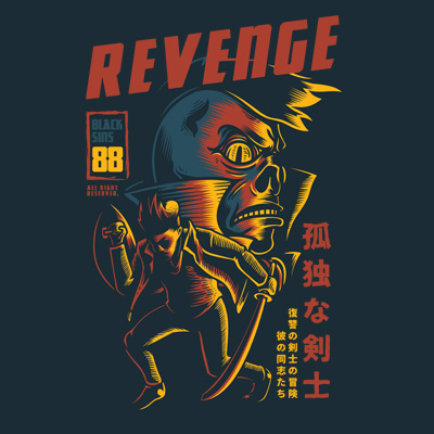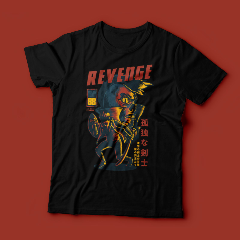 Revenge its a Character Design that was made in adobe illustrator. Based on vector file , easy to resize and edit. File features AI, EPS, and PNG all in zip, CMYK color mode and 4 color. Can be used for digital printing and screen printing.