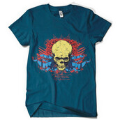 Ink spotted skull on a bloody rose background