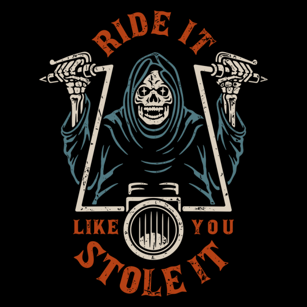 Ride it like you stole it is a vector design. The files including Ai, EPS, PDF and PNG with transparent background. Perfect for both digital printing and screenprinting.