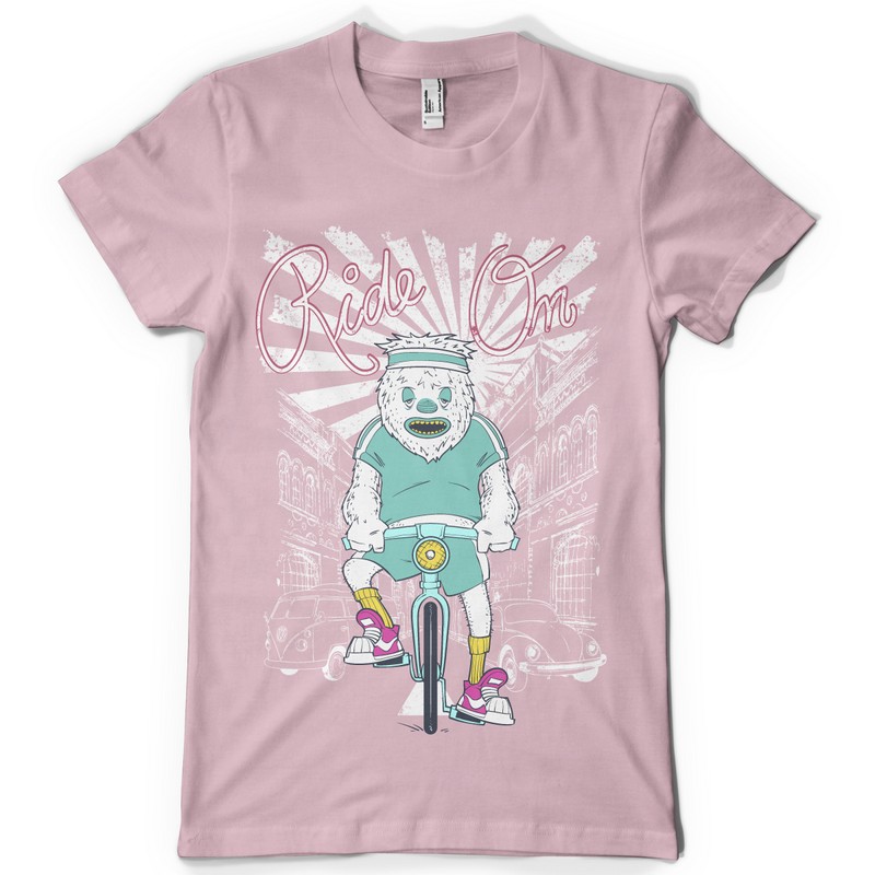 Ride on graphic design template in vector format, featuring detailed creature biker now available for Adobe Illustrator, Adobe Photoshop and Corel Draw and can be used for digital printing and screenprinting .