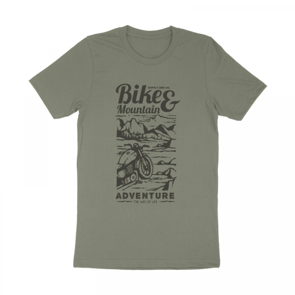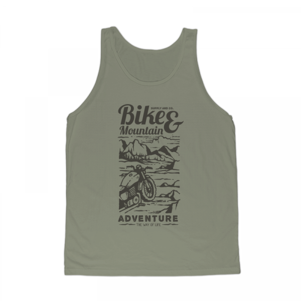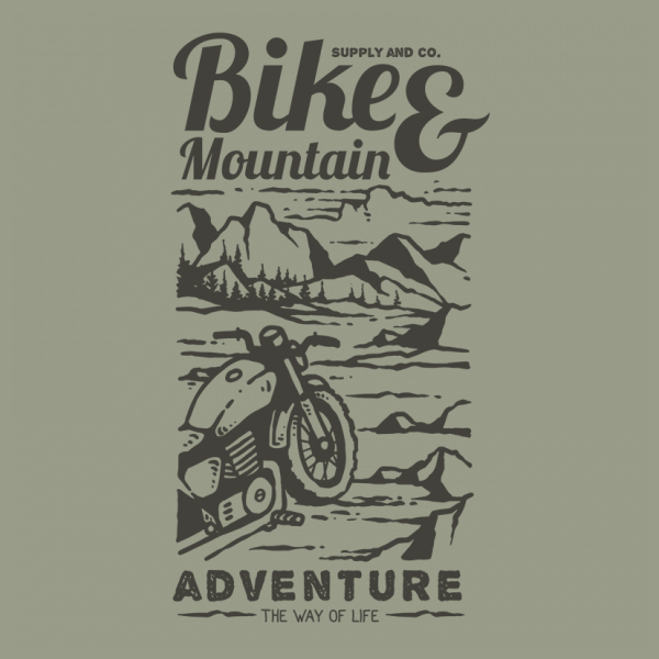 Custom scrambler vintage adventure motorcycle on the beautiful landscape of mountain vector illustration. Ready to print on t-shirt.