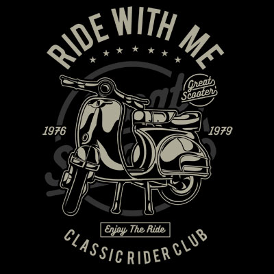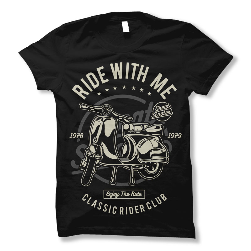 Ride With Me Tshirt Design Template based on vector files , such as AI and CDR also with PSD separated Layers file, the design has 3 color print, it can be used for digital printing and screen printing