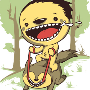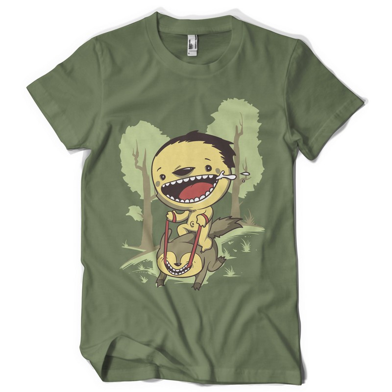 Ride graphic design template in vector format, featuring detailed happy creature of the forest ridding an animal now available for Adobe Illustrator, Adobe Photoshop and Corel Draw and can be used for digital printing and screenprinting .