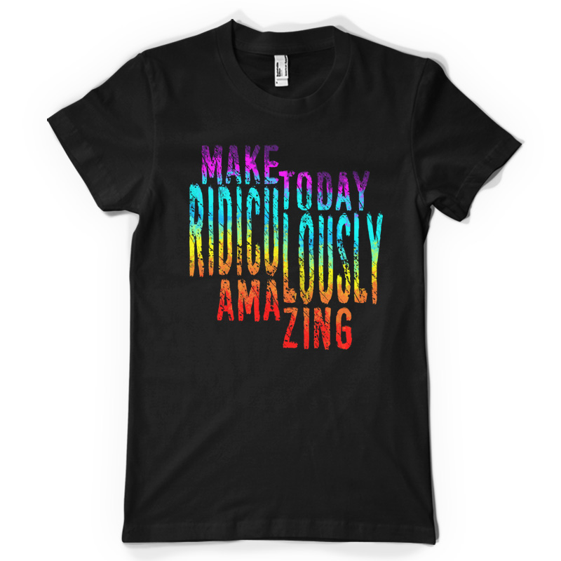 "Ridiculously Amazing" is a unique typography of a quote "Make Today Ridiculously Amazing". This design is very eye-catching not only because of its quote but also in its vibrant colors! This design can also be used in 1 color and can be used on various shirt colors. File contains a 17x24 in PSD size.