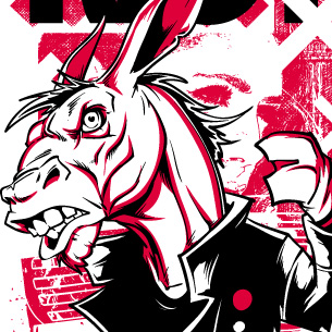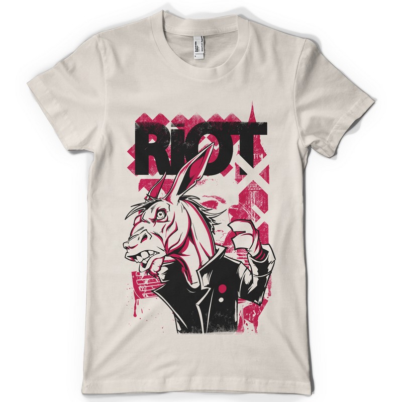 Riot graphic design template in vector format, featuring detailed badass horse now available for Adobe Illustrator, Adobe Photoshop and Corel Draw and can be used for digital printing and screenprinting .