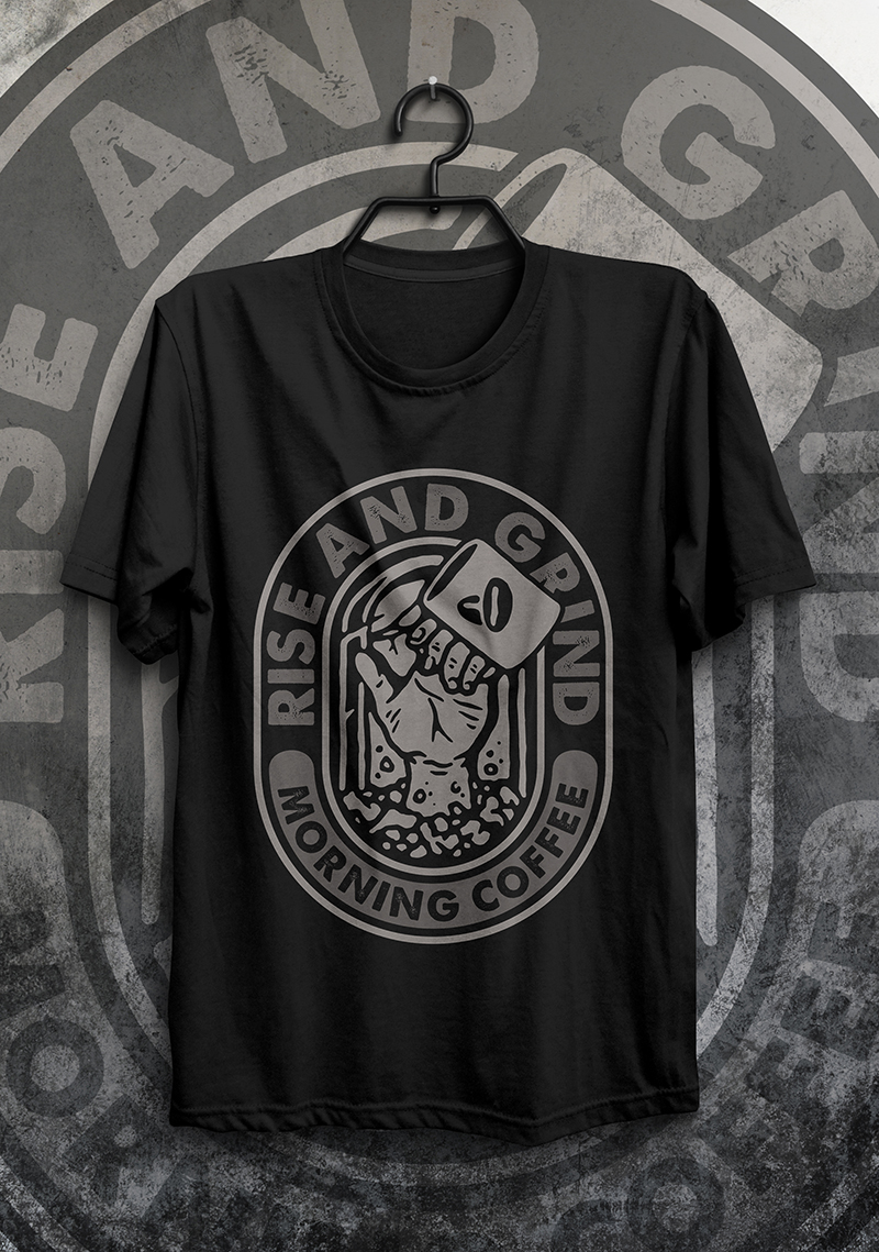 Rise and grind is a vector design. can be printed both on dark and light background. The files including Ai, EPS and PNG with transparent background. Perfect for both digital print and screen printing.