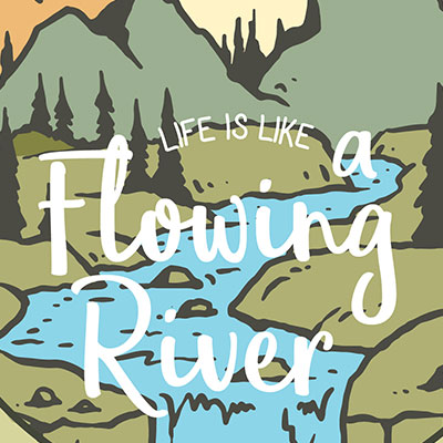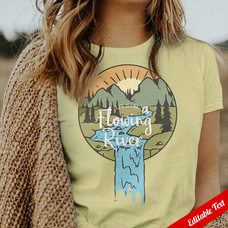 Vector illustration of river valley nature with waterfall. Ready to print on t-shirt.