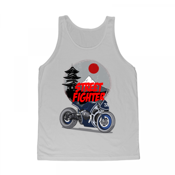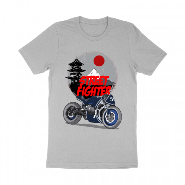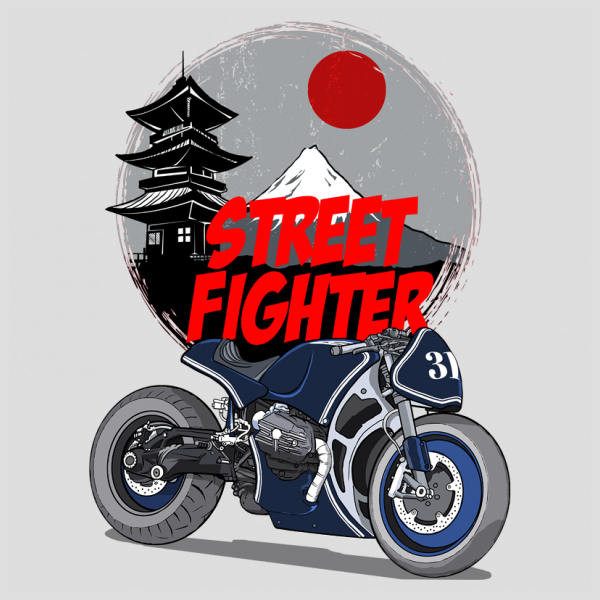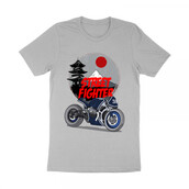Road Fighter design t-shirt features are available in an Adobe Photoshop file and a PNG file with layers. There are two options design in dark background dan white/bright background. Design can be used for digital printing and screen printing techniques.