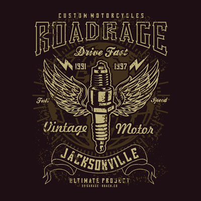 Road Rage T-shirt design template with CorelDraw or Adobe Illustrator 2 colour print, CDR,AI,PSD separated Layers. Can be used for digital printing and screen printing.