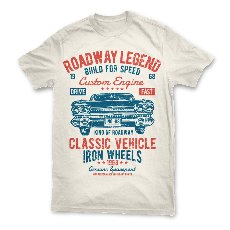 Roadway Legend Tshirt Design Template based on vector files , such as AI and CDR also with PSD separated Layers file, the design has 2 color print, it can be used for digital printing and screen printing.