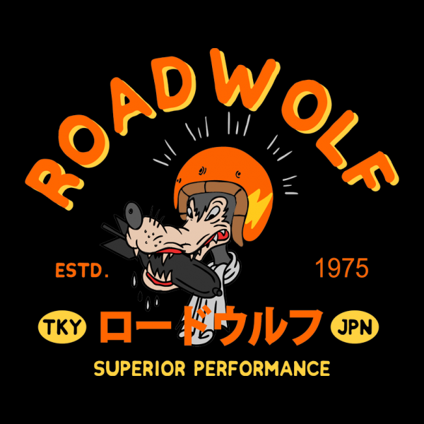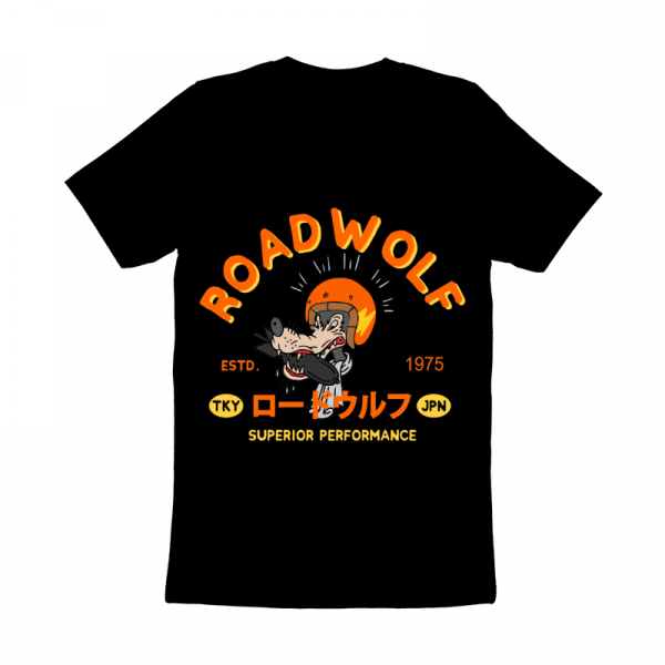 This design “ roadwolf ” is made in Adobe Ilustrator is ready for print.