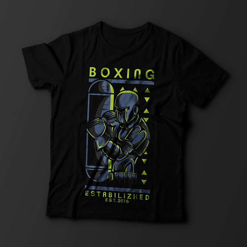 Robo Boxing with Urban Streetart style it's cool with you who love a simple design but still look nice. based on vector file that easy to resize and edit. file features AI, EPS, and PNG all in zip. CMYK color mode. text can be changed and font link included on readme file.