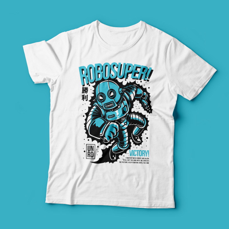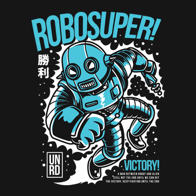 Robosuper its a Character Design that was made in adobe illustrator. Based on vector file , easy to resize and edit. File features AI, EPS, and PNG all in zip, CMYK color mode and 3 color. Can be used for digital printing and screen printing.