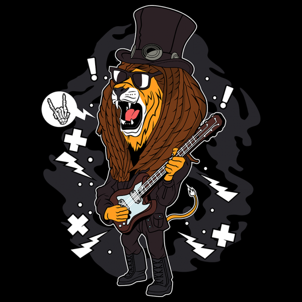 funny rock and roll lion Vector illustration tshirt design , available on Corell Draw X4 file, Adobe illustrator file , EPS ,svg , Transparent Back Ground PNG file , PDF file its can be use for Digital printing and screen printing