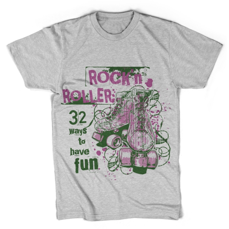 Digital design featuring roller skates and funny text.Rock and Roller t-shirt template will be available in vector format for Adobe Illustrator, Adobe Photoshop and Corel Draw and can be used for digital printing and screenprinting .