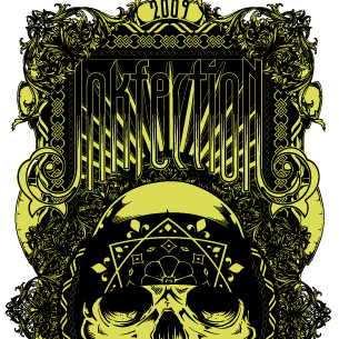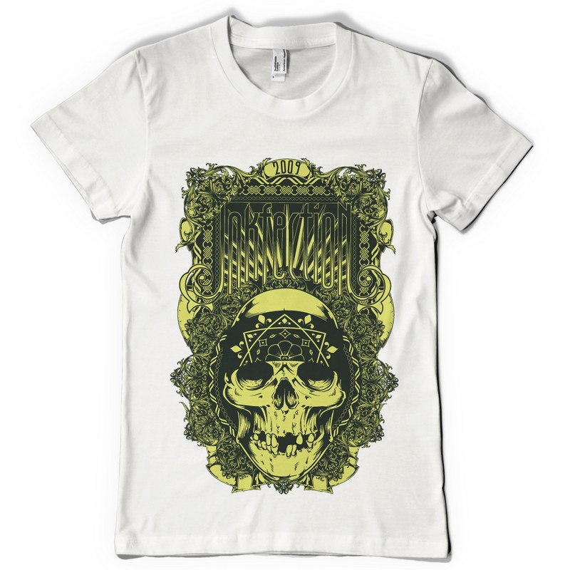 Rock hard digital design template in vector format, featuring detailed badass skull now available for Adobe Illustrator, Adobe Photoshop and Corel Draw and can be used for digital printing and screenprinting .