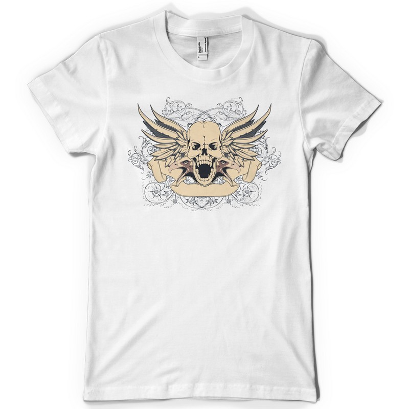 Rock logo printed t-shirt features a detailed screen print of mad skull now available in EPS format file and can be used for digital printing and screenprinting . Ready to print or use in anything you want.