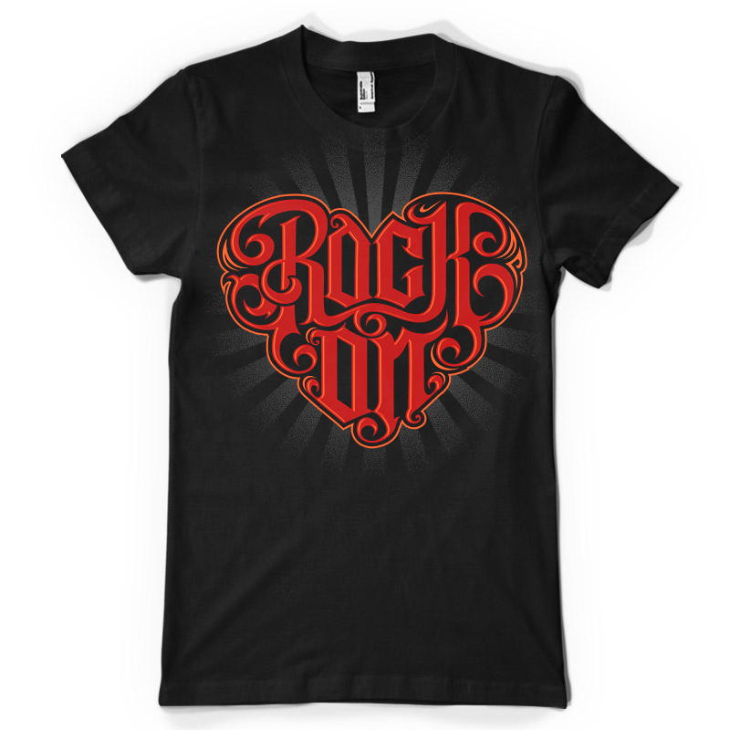 Rock On T-shirt design created with Corel Draw and Adobe illustrator. 2 colour print, CDR,AI,EPS,PDF,PSD separated Layers. Can be used for digital printing and screen printing.