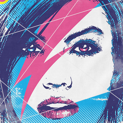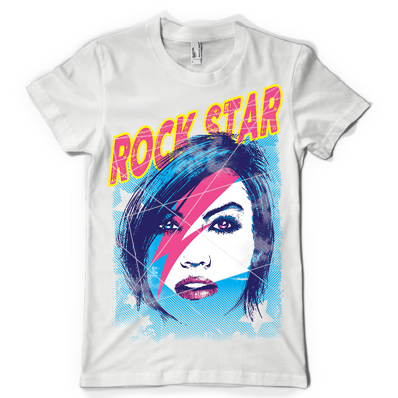 Rock Star design features a collage face detailed screen print now available for Adobe Illustrator, and Corel Draw and can be used for digital printing and screenprinting.