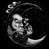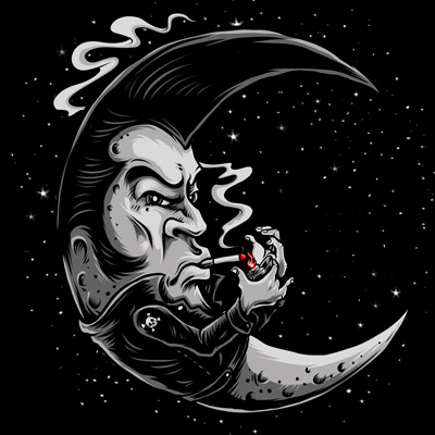 " Rockabilly to the Moon "design is created using Photoshop. It is created in high resolution format PSD. The illustration is originaly hand drawn.