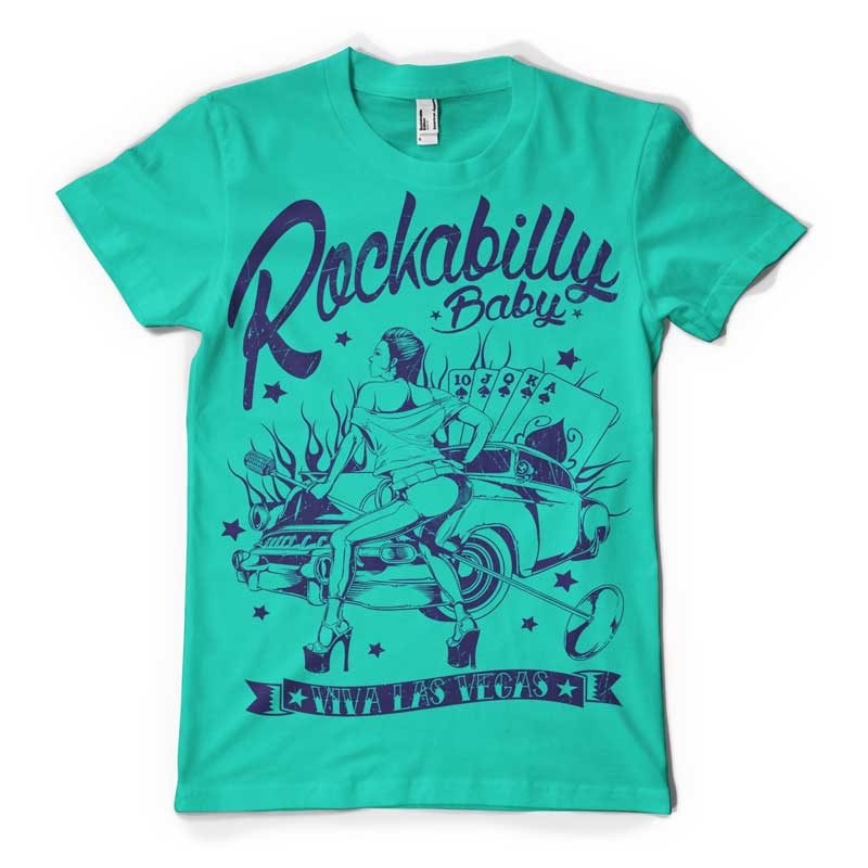 Rockabilly t-shirt design features a detailed screen print of sexy singer now available for Adobe Illustrator, Adobe Photoshop and Corel Draw and can be used for digital printing and screenprinting .