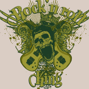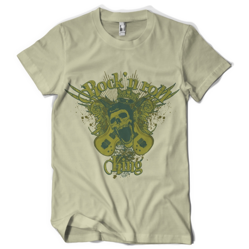 Rock'n'Roll King t-shirt design featuring skulls, wings, guitars, elements of rock will be available in vector format for Adobe Illustrator, Adobe Photoshop and Corel Draw and can be used for digital printing and screenprinting .