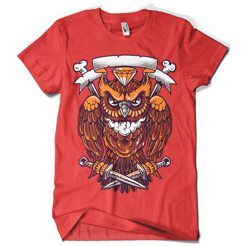 Rogue Owl t-shirt design featuring mad owl look .T-shirt Design is available for Adobe Illustrator, Adobe Photoshop and Corel Draw and can be used for digital printing and screenprinting.