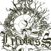 Roots invading skulls on a vintage background