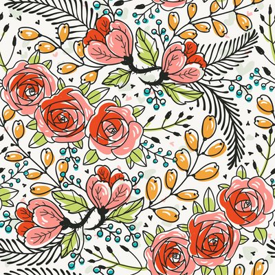 Vector floral seamless pattern with blooming roses.This image is a vector illustration and can be scaled to any size without loss of resolution. This image will download as a .eps file.