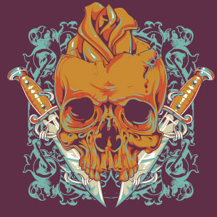 Rose idea graphic template in vector format, featuring detailed rose brain of a skull now available for Adobe Illustrator, Adobe Photoshop and Corel Draw and can be used for digital printing and screenprinting .