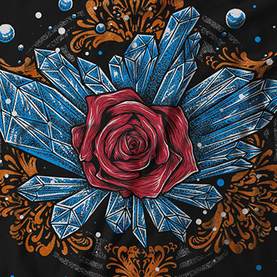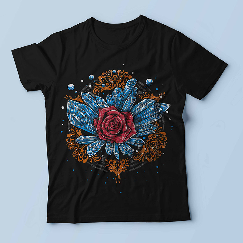 "Rose Mandala" Artwork design containing 4 separated colors for dark/black tee. Available on PSD's file, with 30cm x 42cm workspace. Can be used for digital printing and screen printing.