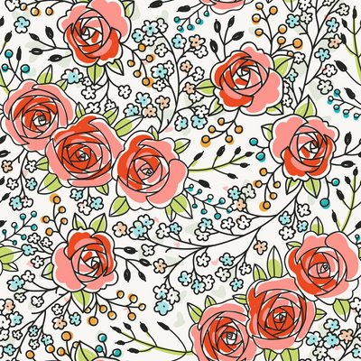 Vector floral seamless pattern with blooming roses.This image is a vector illustration and can be scaled to any size without loss of resolution.This image will download as a .eps file.