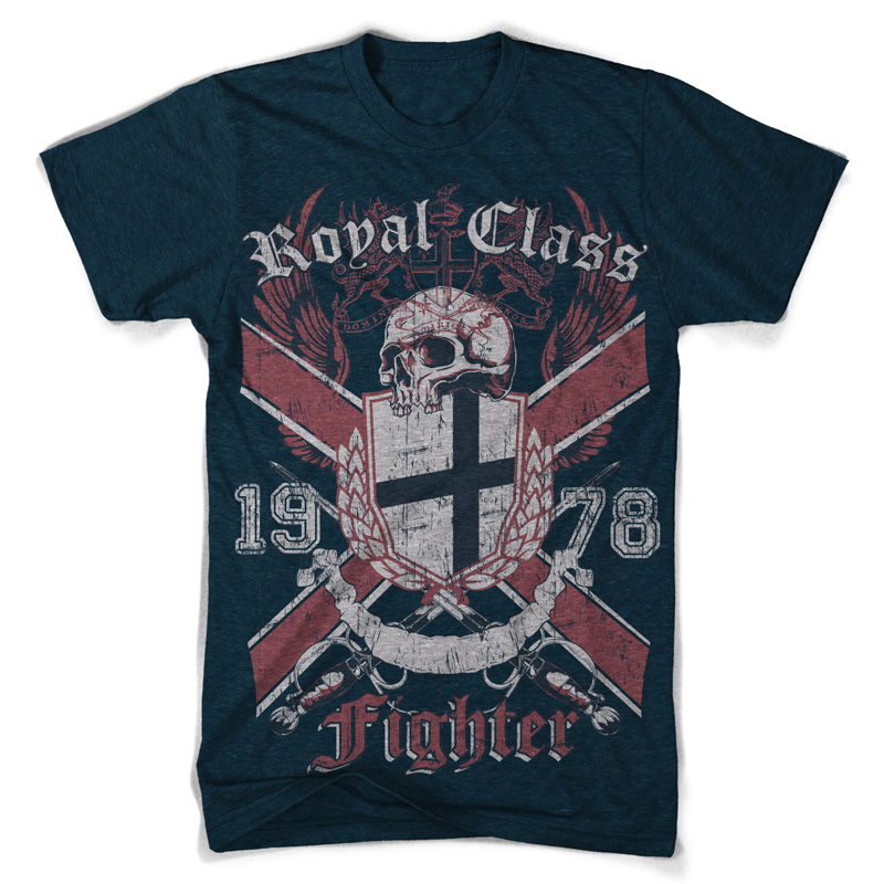 Digital design featuring detailed bitten shield by a skull . Royal Class Fighter template is available in vector format and can be used for digital printing and screenprinting. The file will be available for Adobe Illustrator, Adobe Photoshop and Corel Draw