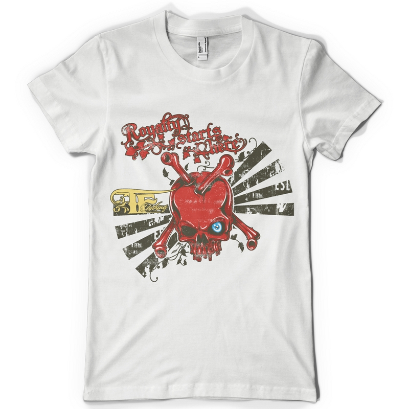 Royal dawn T-shirt template in vector format, featuring detailed evil skull now available for Adobe Illustrator, Adobe Photoshop and Corel Draw and can be used for digital printing and screenprinting .