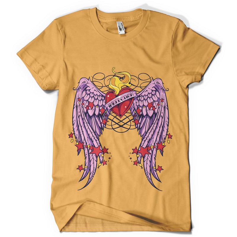 Royal wings graphic design template in vector format, featuring detailed winged heart now available for Adobe Illustrator, Adobe Photoshop and Corel Draw and can be used for digital printing and screenprinting .
