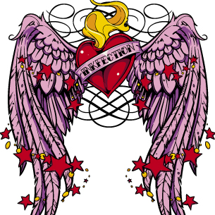 Flaming winged heart tattoo design