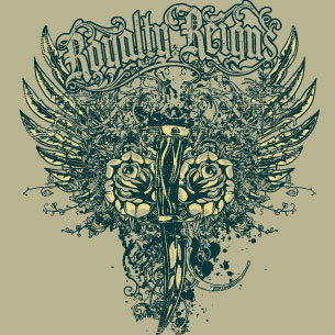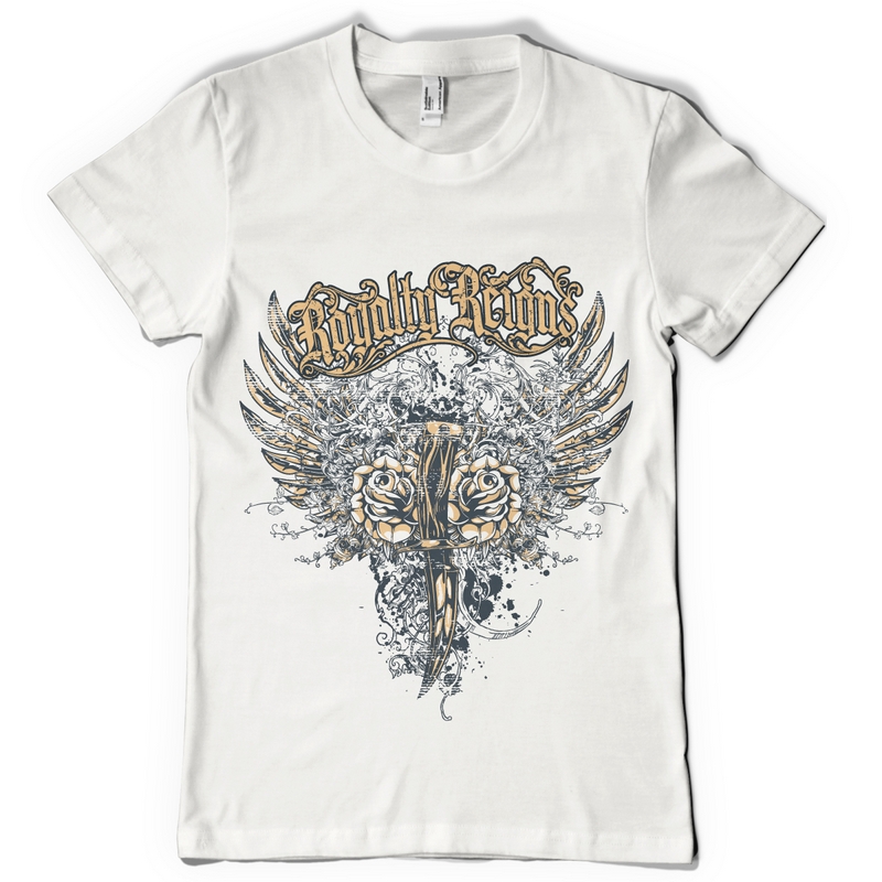 T-shirt design presents detailed royalty dagger available in vector format for Adobe Illustrator, Adobe Photoshop and Corel Draw and can be used for digital printing and screenprinting .