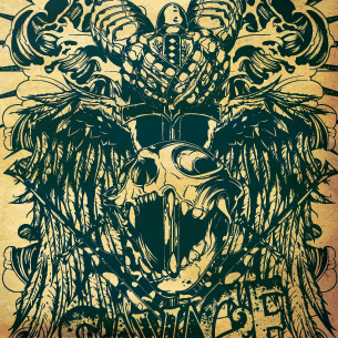 Rummage digital design template in vector format, featuring detailed creepy screaming skull now available for Adobe Illustrator, Adobe Photoshop and Corel Draw and can be used for digital printing and screenprinting .
