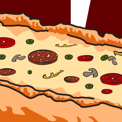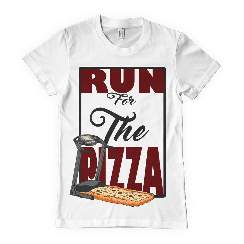 Run for the pizza T-Shirt Design. Digital illustration of featuring detailed pizza and running band.The colors are changeable. The source file is available in AI, EPS, PNG, PSD and SVG format.