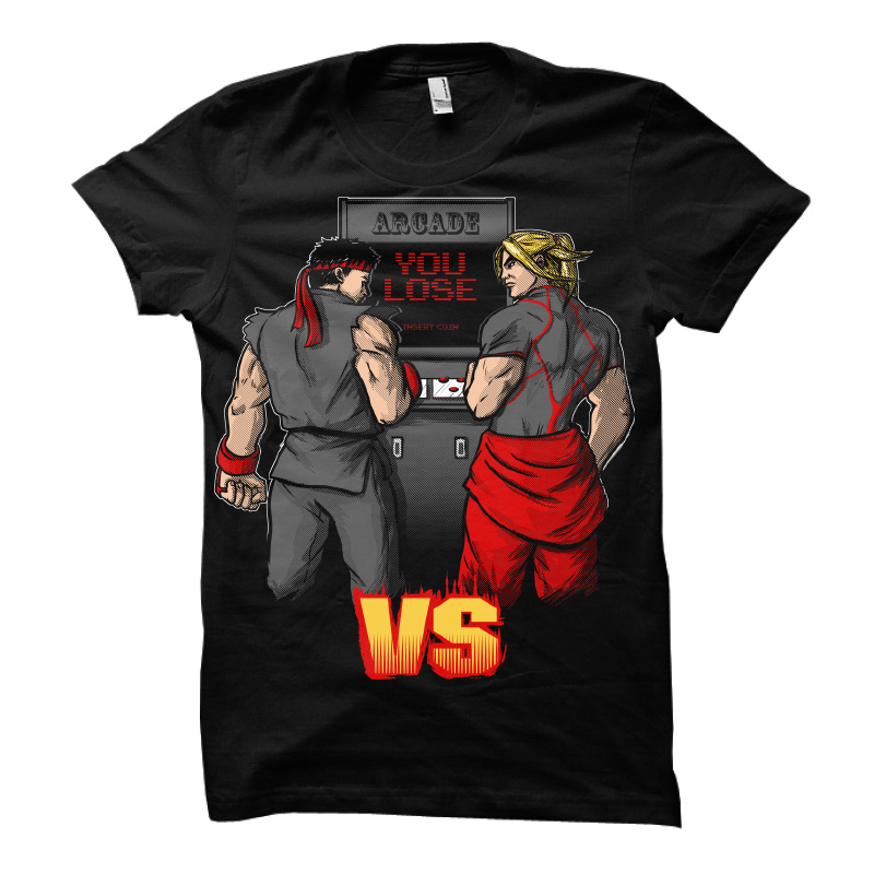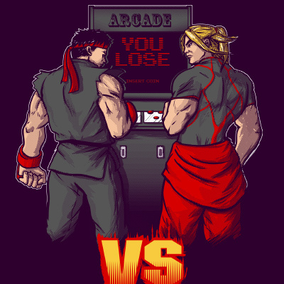 This design is based on old-school arcade nostalgia. What if Ryu and Ken from Street Fighter actually played each other?