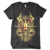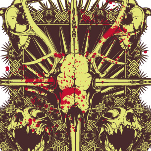 Cross stabbed horned animal skull