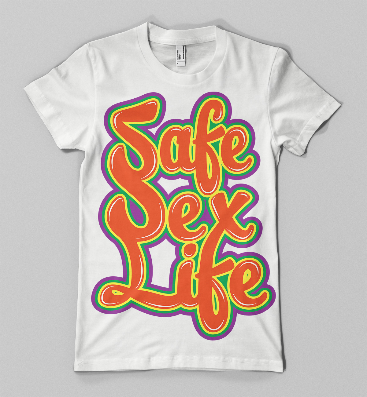 Safe Life t-shirt design features a detailed screen print of typographic message now available for Adobe Illustrator, Adobe Photoshop and Corel Draw and can be used for digital printing and screenprinting .